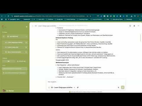 Ich habe die Zielgruppe detailliert ausgearbeitet und das Outline des Buches vollständig erstellt. Beides ging schneller als erwartet. Insgesamt habe ich etwas mehr als eineinhalb Stunden investiert. Die Assistenten funktionieren stabil, die Prozesse greifen ineinander.